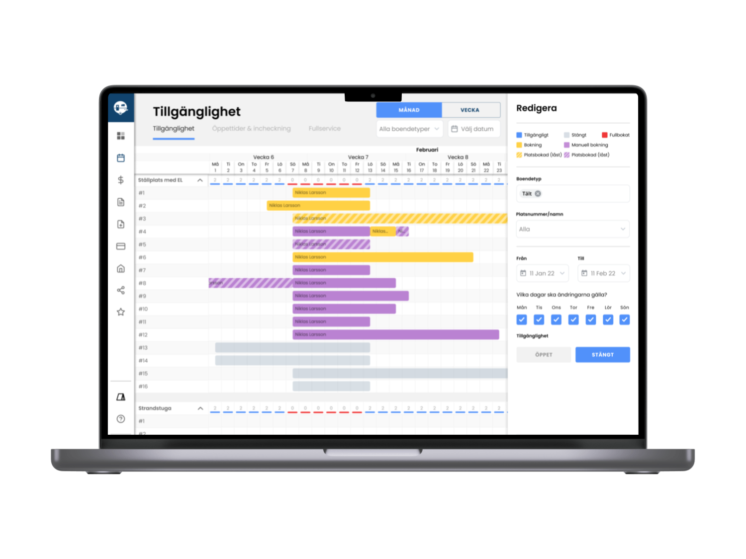 Tillgänglighetskalendern ger dig en snabb och tydlig överblick över din anläggnings beläggning, vilket förenklar bokningshanteringen och optimerar din drift.