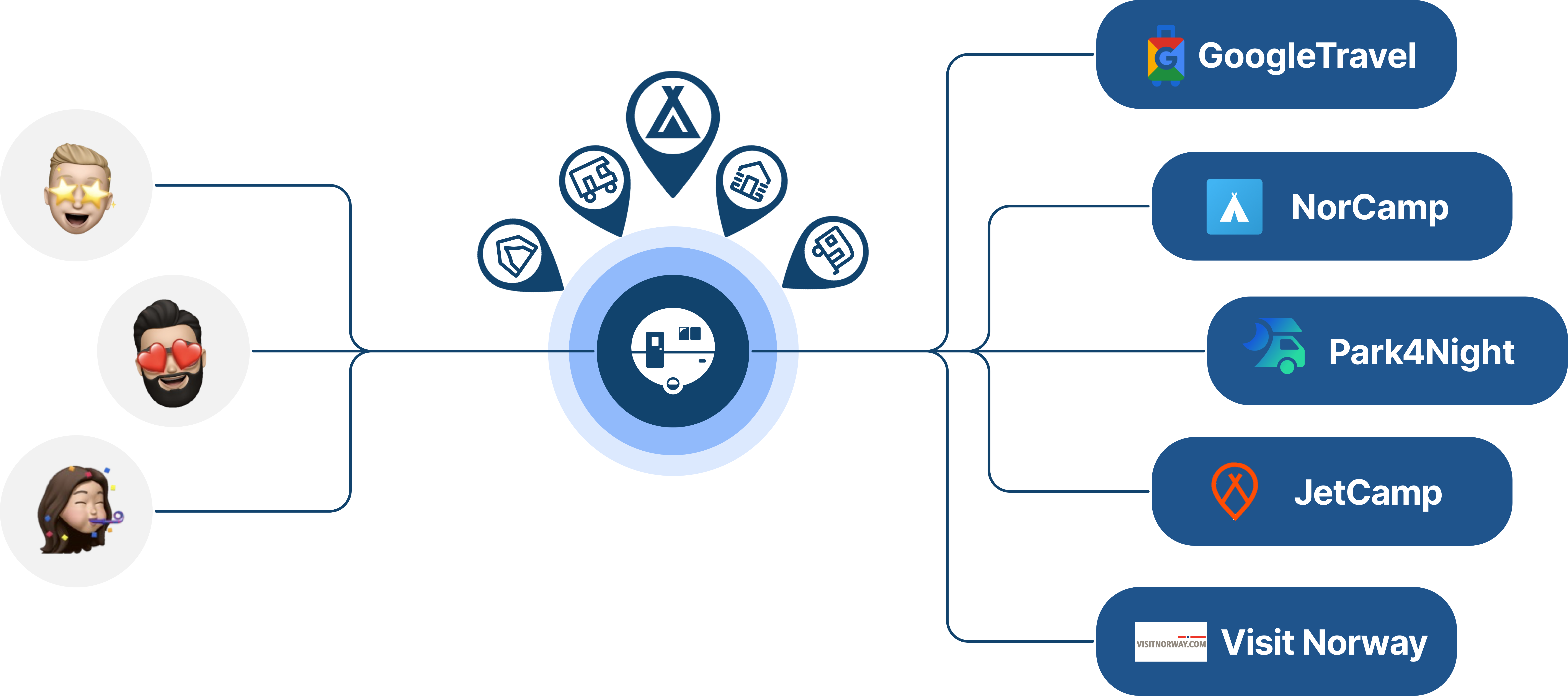 Vi samarbetar idag med över ett 50-tal bransch-specifika samarbetspartners där våra anläggningar marknadsförs till campingsökande gäster från hela världen.